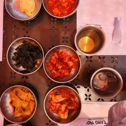 Perfect summer meal! Hubbie and I could not pass up our chance to eat some Korean food on this hot summer day. Although "Tang" means hot stew (and boy were their stews tempting to try), we came for their cold buckwheat noodles and bibimbap. They were both so good, we were pleasantly pleased. As a Korean who's tried many Korean restaurants, here are some (great) things I've noticed: 1. Their restaurant is clean and pleasant, especially for the type of Korean dishes they offer. 2 Their waitresses are so friendly 3. They are not stingy with their side dishes, and come around often asking if we want more. 4. Their wait is not horrendous, we did not have to wait on a Sunday afternoon for lunch. Other than that, we both thoroughly enjoyed our meals! I thought their dishes were all on point, and also very fresh. I will definitely be returning for their food, vibe and service